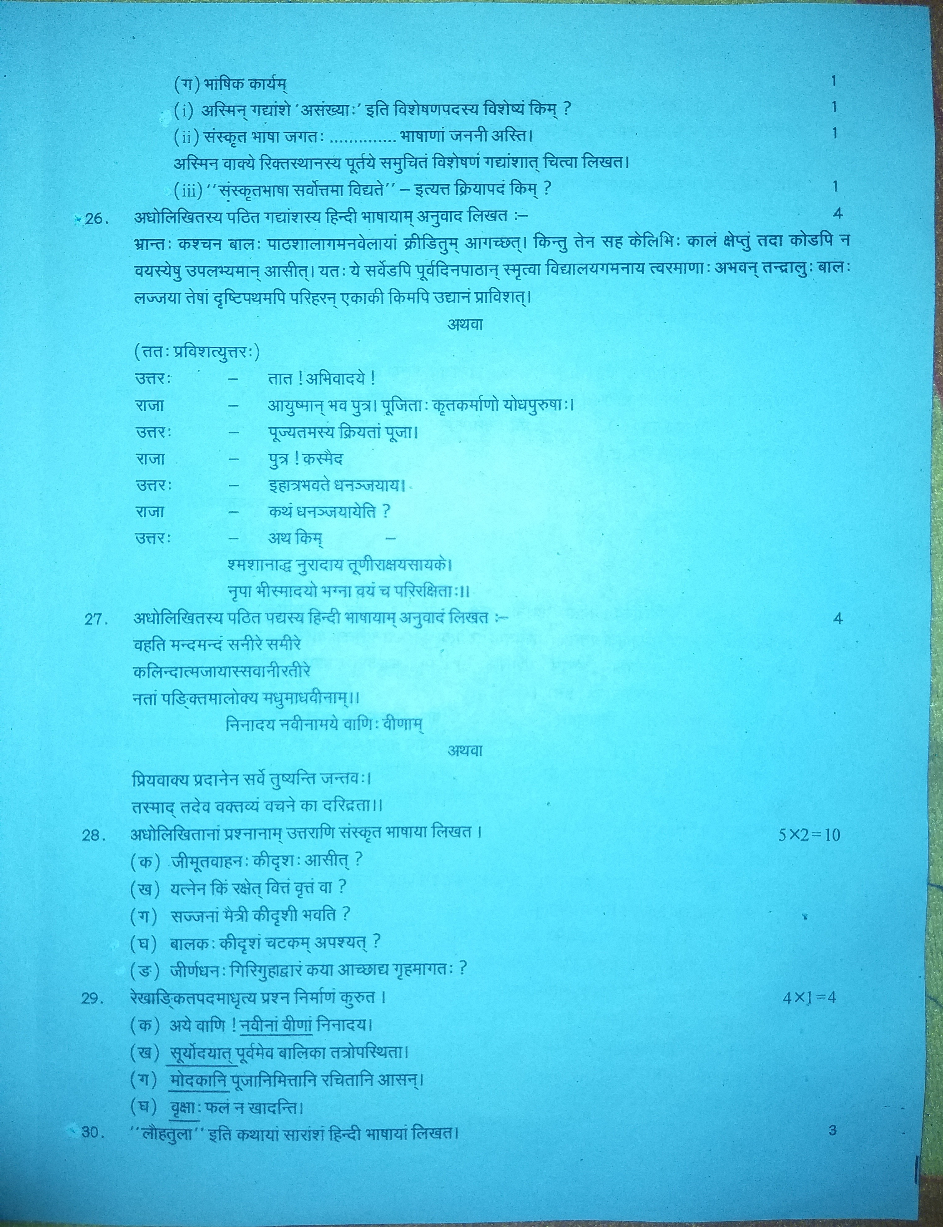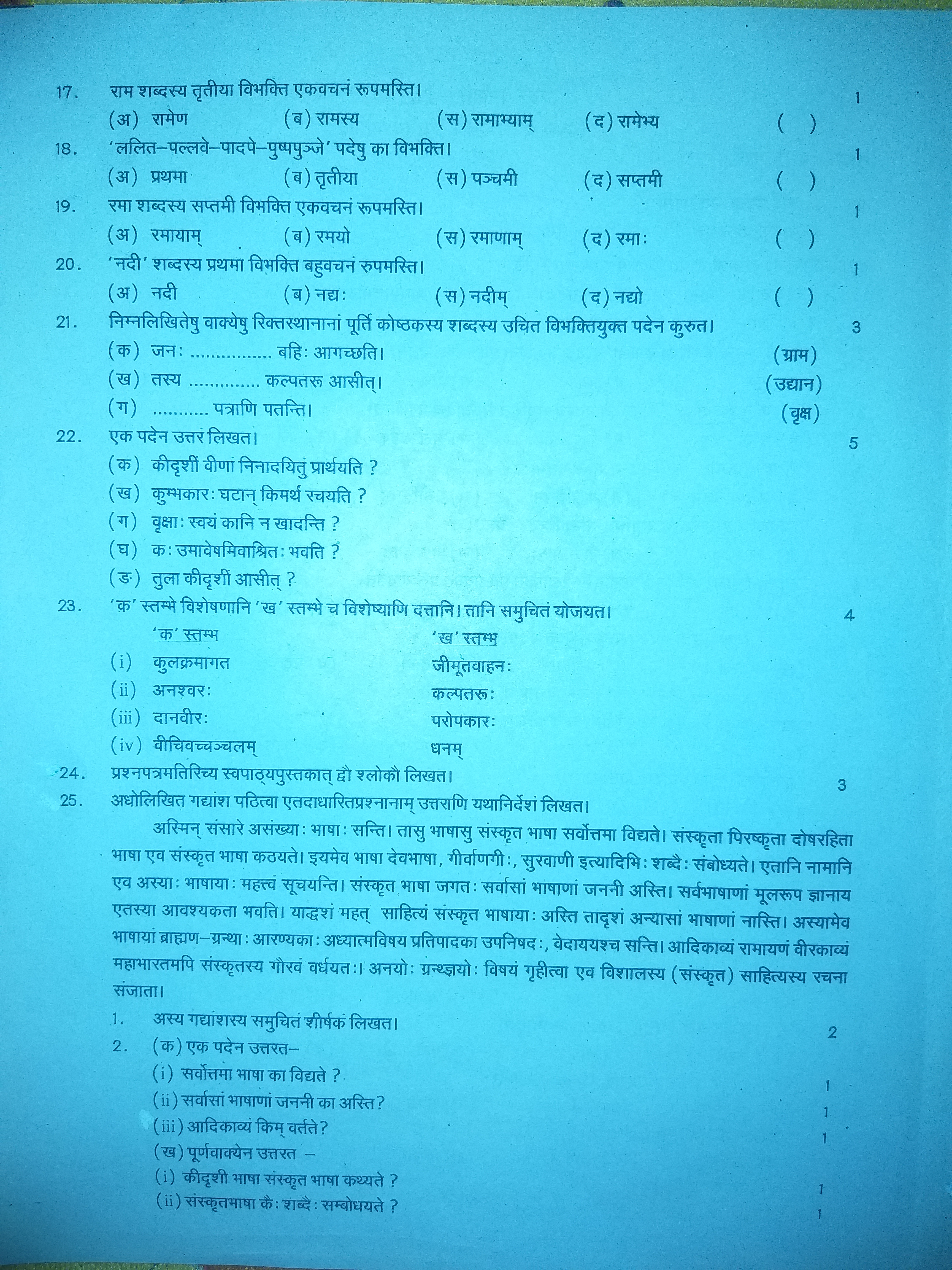 Ncert class 9th Sanskrit Annual Exam paper 2021-22