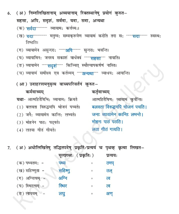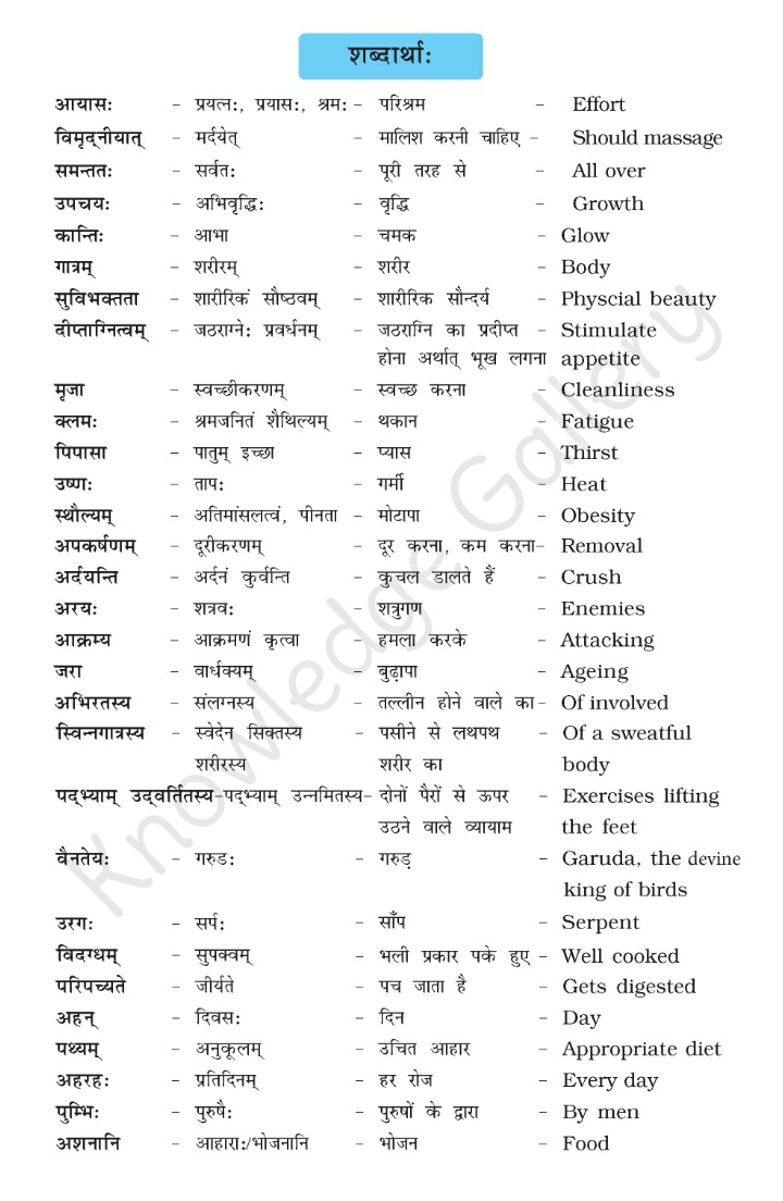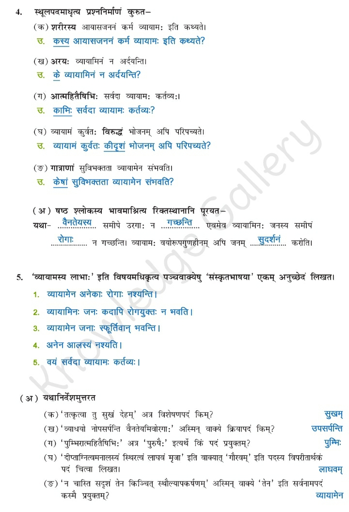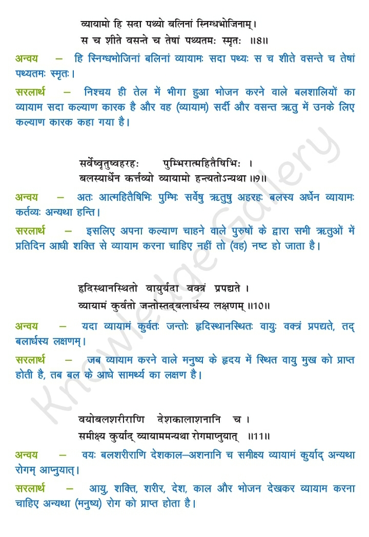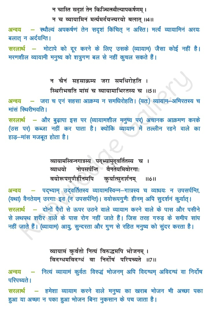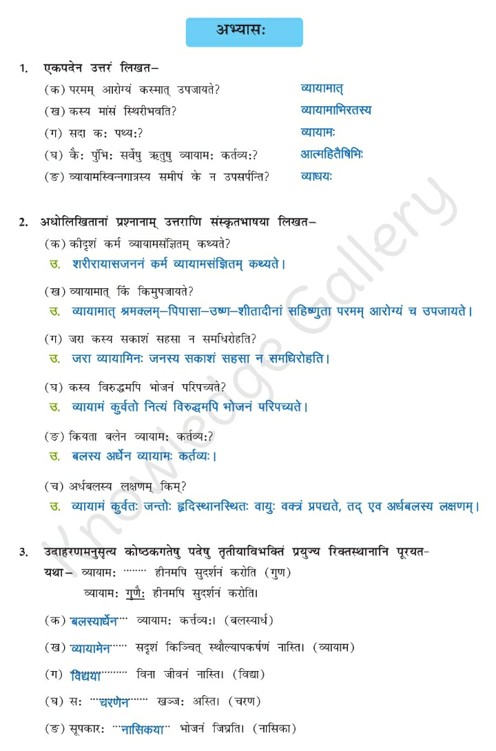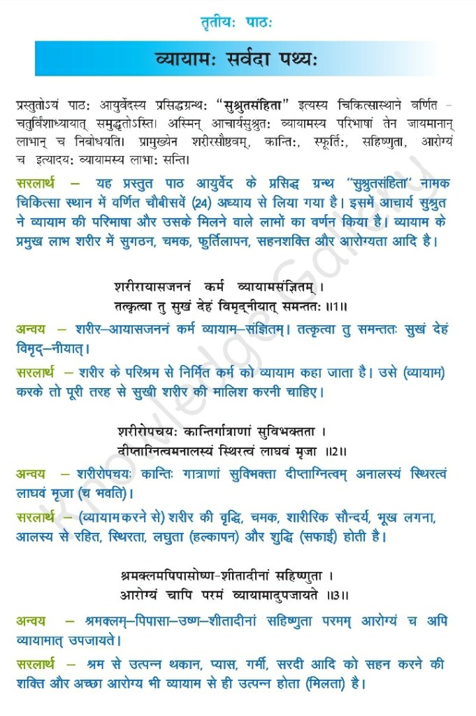 NCERT Solution for Class 10 Sanskrit Chapter 3 – व्यायामः सर्वदा पथ्यः