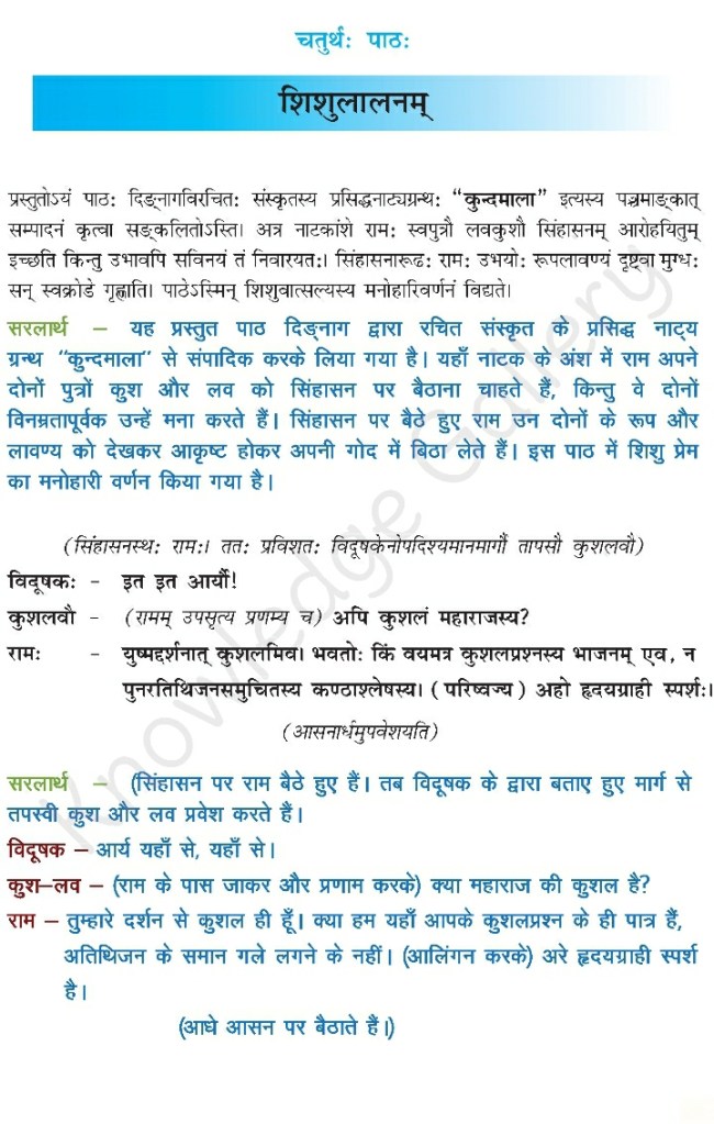 NCERT Solution for Class 10 Sanskrit Chapter 4 – शिशुलालनम्