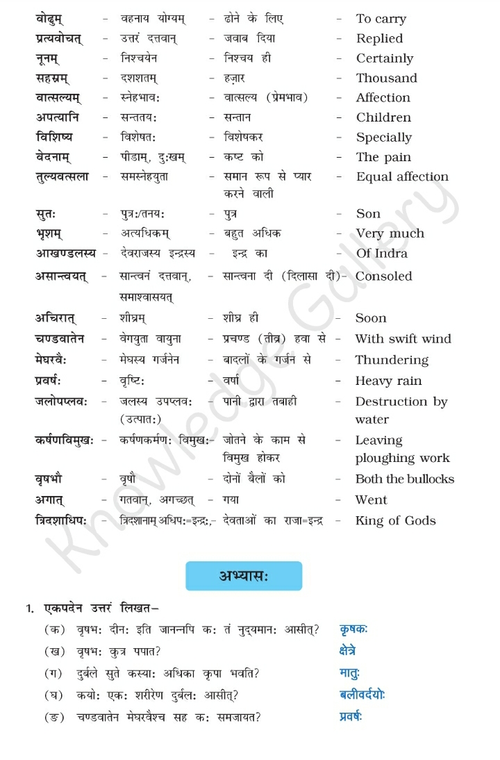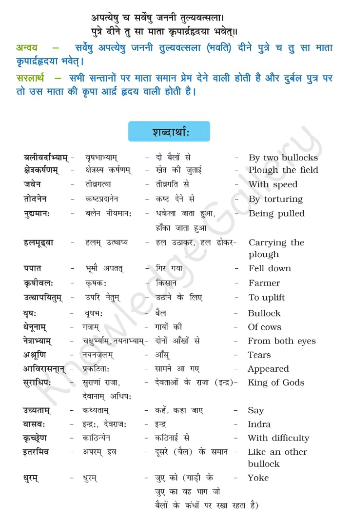 NCERT Solution for Class 10 Sanskrit Chapter 5- जननी तुल्यवत्सला –