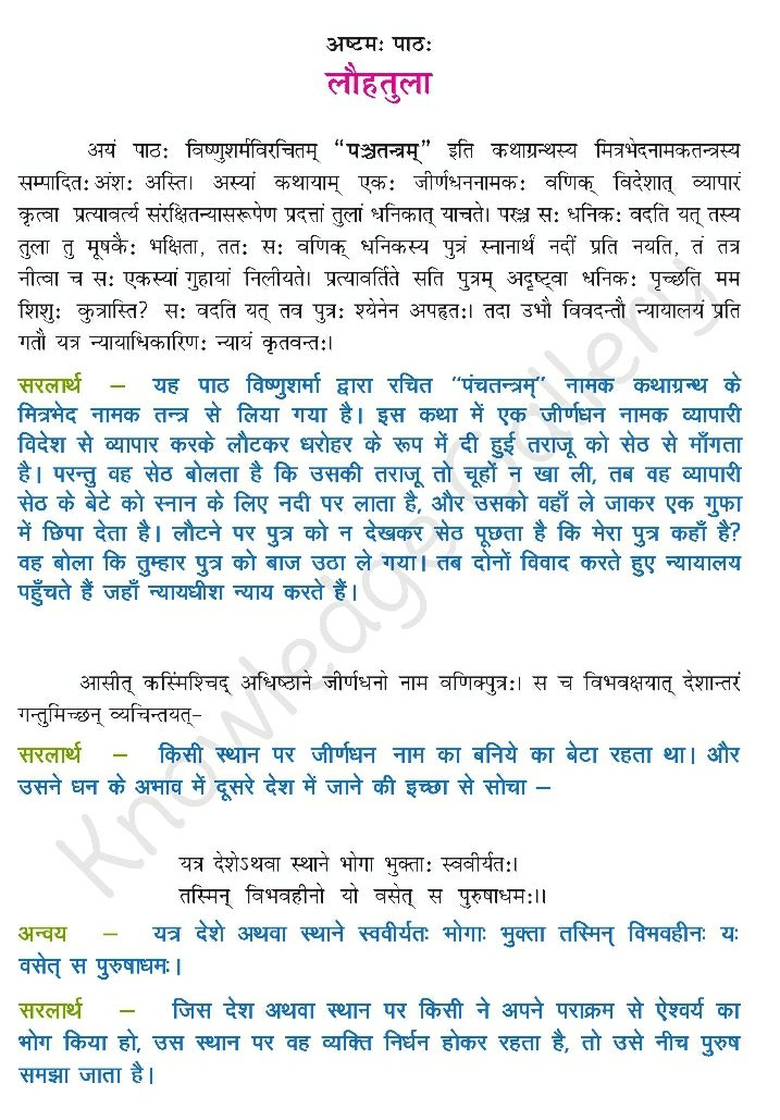 NCERT Solutions for Class 9 Sanskrit Chapter 8 – लौहतुला