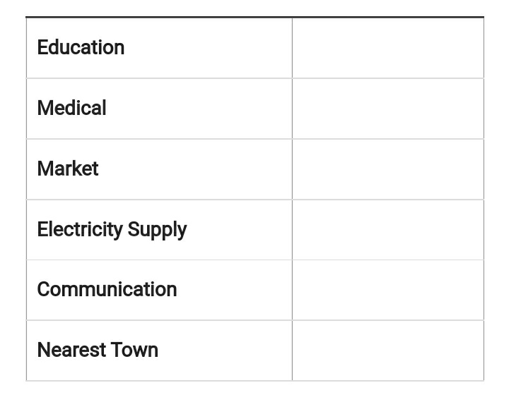 Question 1 Every village in India is surveyed once in ten years during the Census and some of details are presented in the following format. Fill up the following based on information on Palampur. a. LOCATION: b. TOTAL AREA OF THE VILLAGE: c. LAND USE (in hectares):