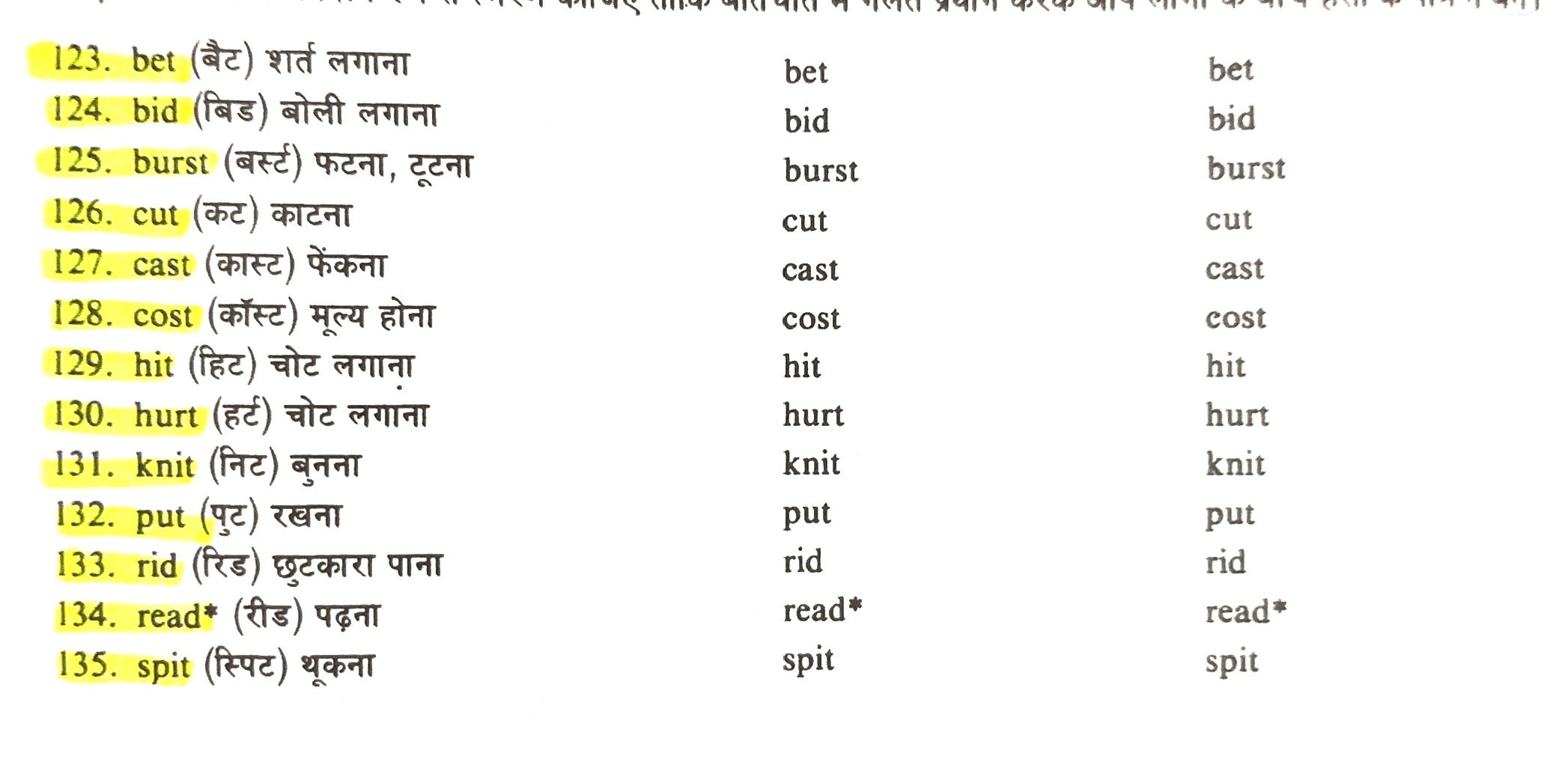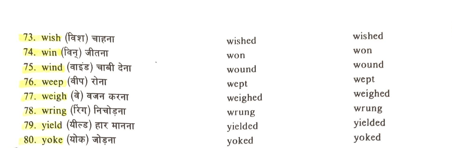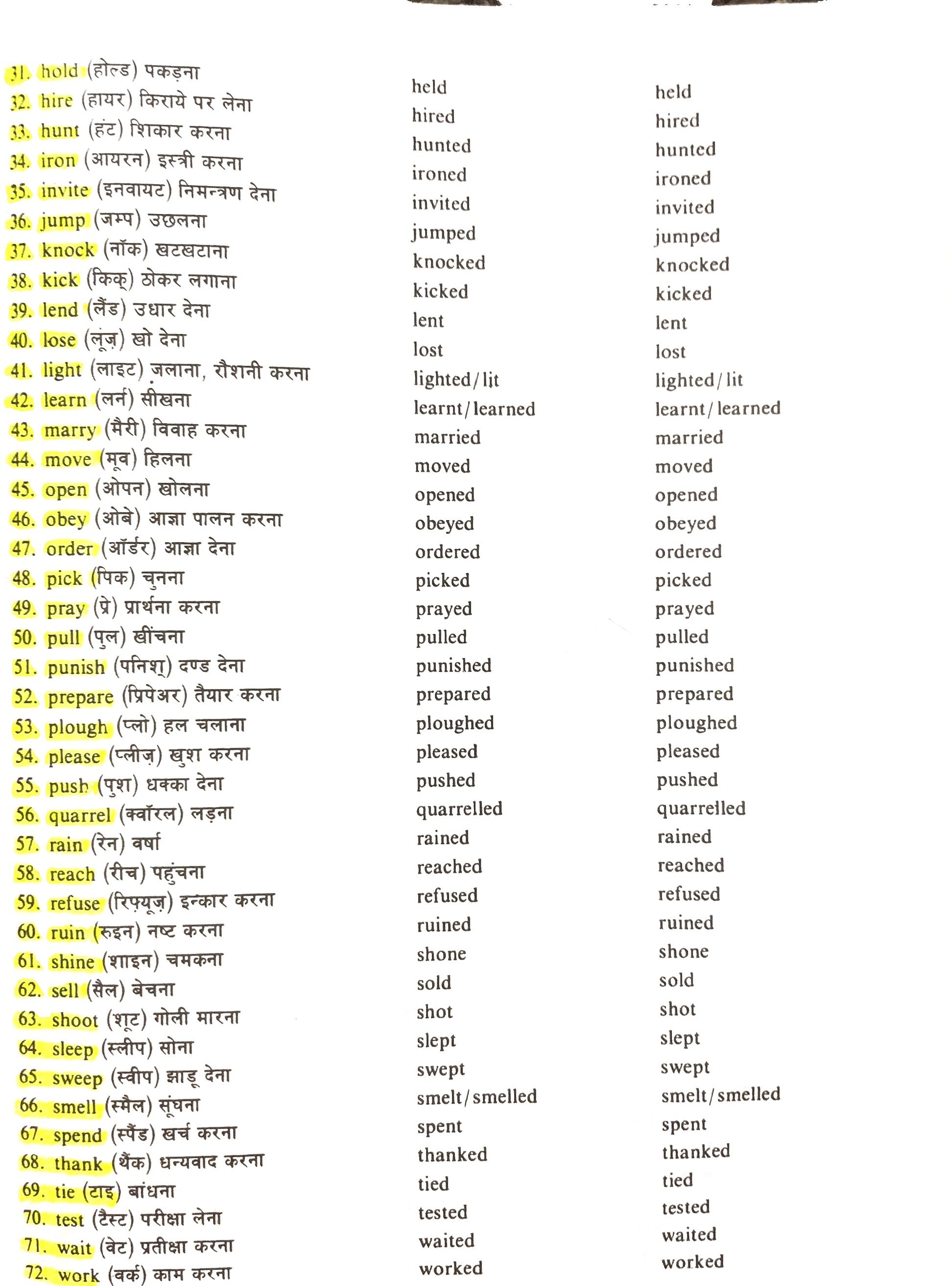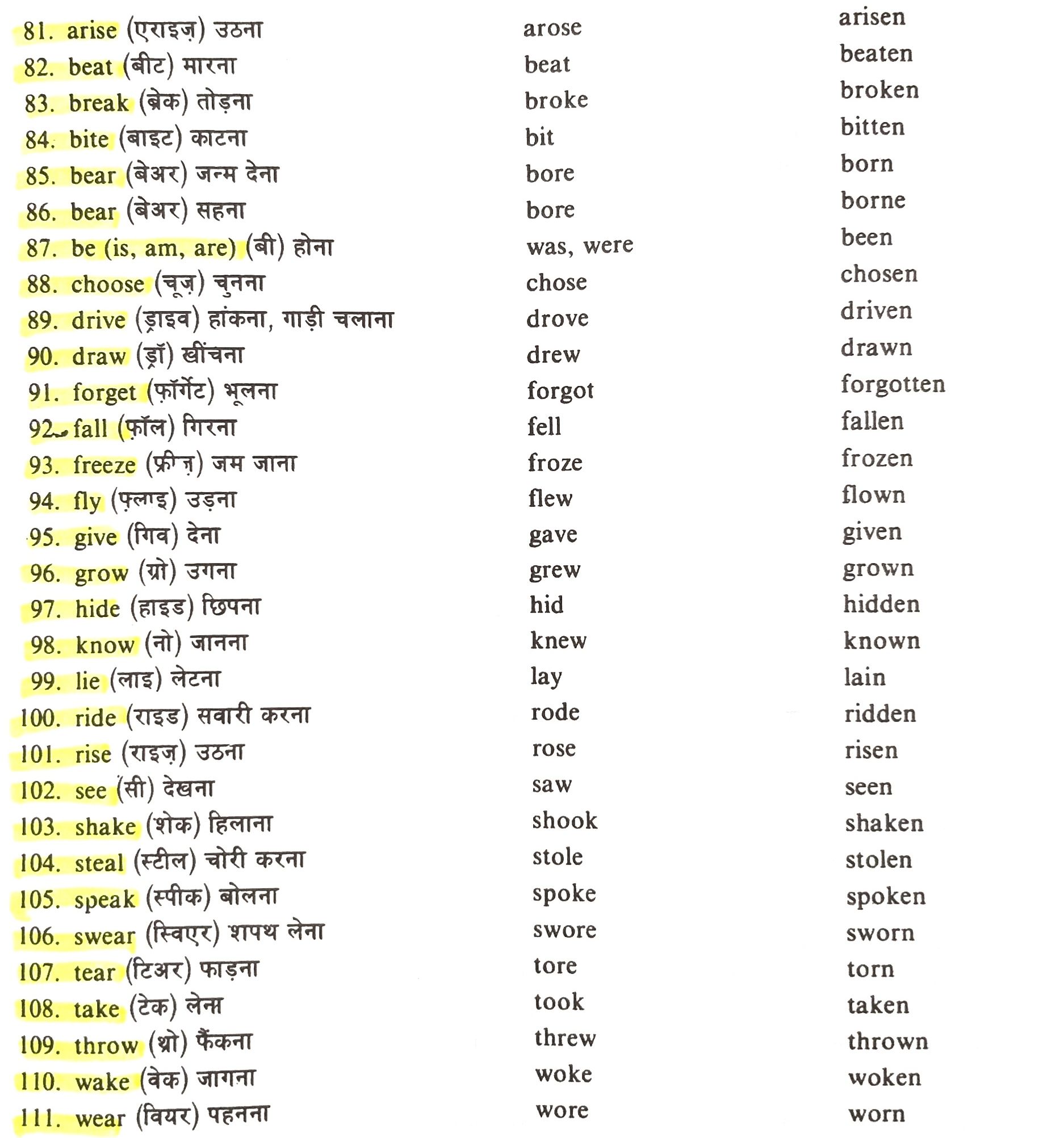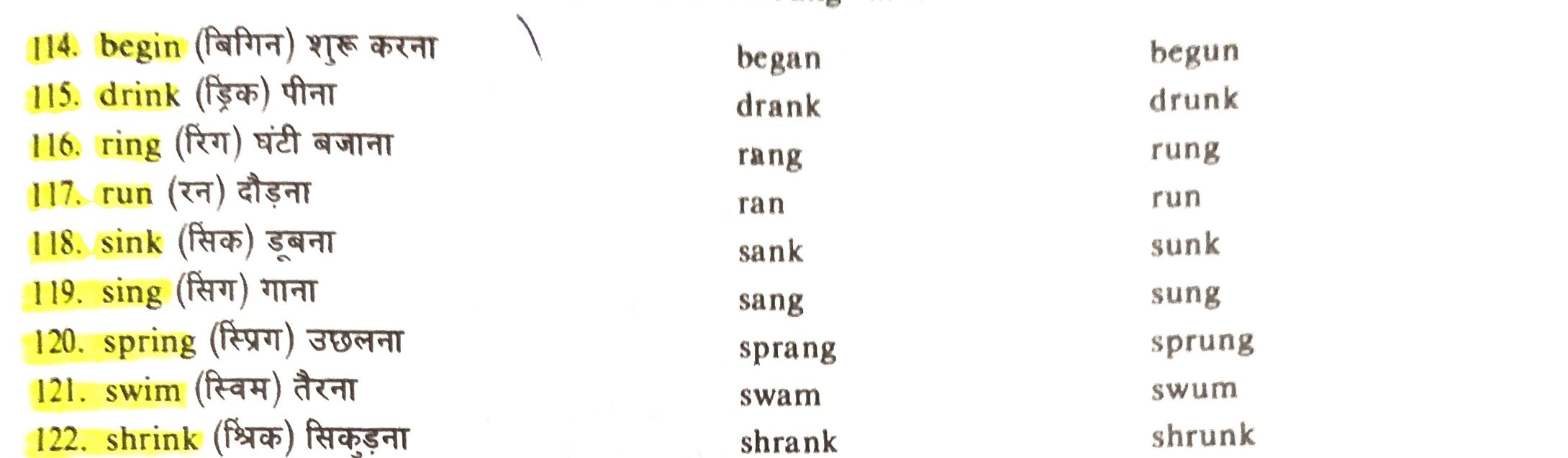There forms of the Verbs for class 8th , 9th , 10th , 11th and 12th